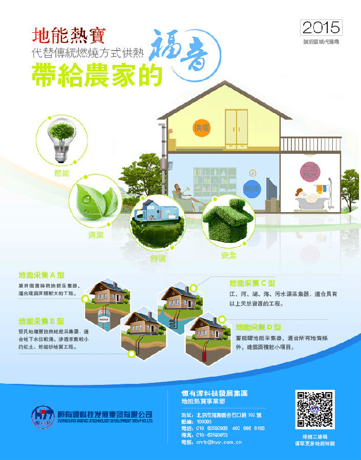 “地能熱寶”是地能熱寶供暖(冷)系統(tǒng)的簡稱,是恒有源科技發(fā)展集團有限公司(以下簡稱恒有源集團)開發(fā)的一整套針對農村及城鄉(xiāng)結合部建筑供暖(冷)特殊需求的新型節(jié)能環(huán)保供暖(冷)解決方案。