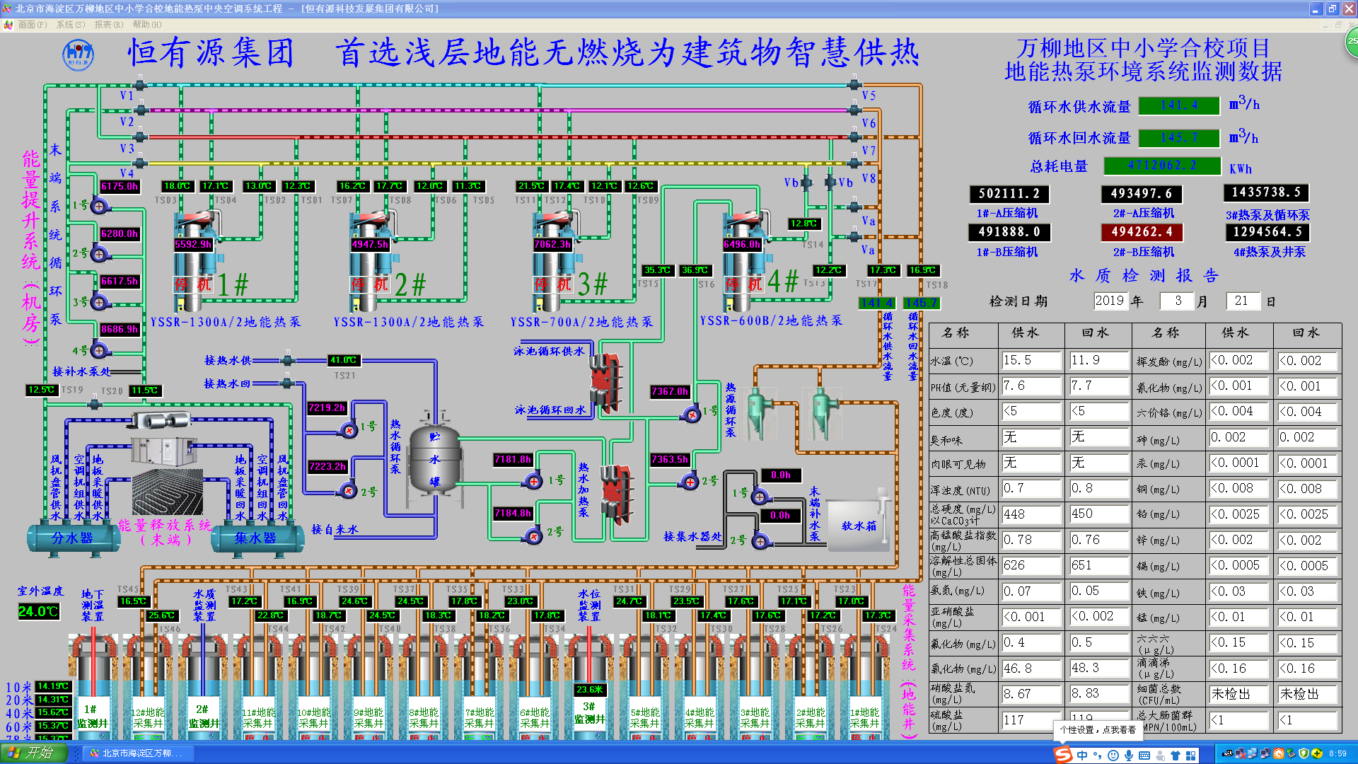 2019-8-28萬柳地區中小學合校項目地能熱泵環境系統監測數據